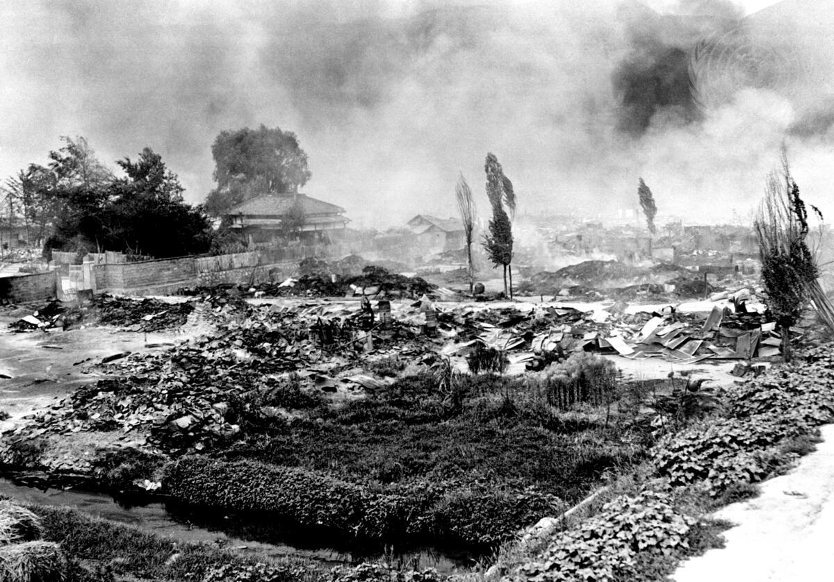 Smoldering wreckage of a village in the Andong-Iechon area.