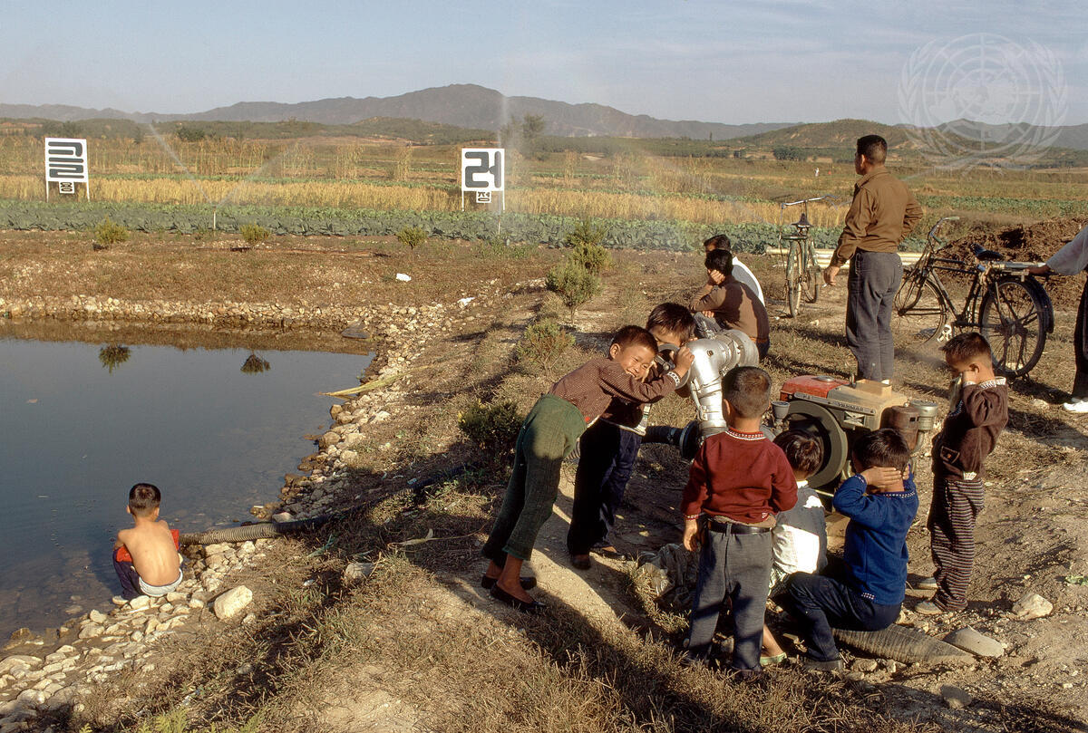 Only 21 percent of Korea’s total land area is cultivated; hence, food production has not kept pace with population growth. Therefore, the Government has initiated a nation-wide drive to increase the country’s agricultural capacity by improving and developing its heretofore uncultivated mountainous regions. The Ansong-Chon watershed in the northwest and the Tongjin-Gang in the southwest have already served successfully as pilot demonstrations for the conversion of eroded, non-productive uplands into fertile cropland and pastures. This was accomplished through the construction of bench-terracing, grassed waterways, diversion drains, improved channels and water storage dams as well as hydrologic, agronomic and agricultural-economic studies. The United Nations Development Programme (UNDP), with the Food and Agriculture Organization (FAO) as executive agency, assisted the Government in this effort, which has been unified and expanded to include a third region – the Naktung River Basin in the southeast. For this phase of the project, FAO is providing expert services, special equipment and fellowships for training local personnel in modern techniques of soil and water management.