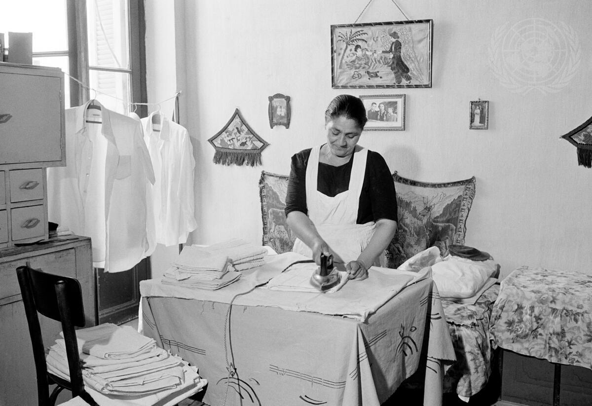 She is seen at the Phaleron Reception Centre where she comes regularly to help families with their washing and ironing. The small launderette she plans to start in the Karea Settlement will be opened with the aid of a washing machine contributed by the Office of the High Commissioner for Refugees in Athens, under the Professional Help Project. Her daughter is now studying dressmaking at the YWCA, through the vocational training programme of the UNHCR.