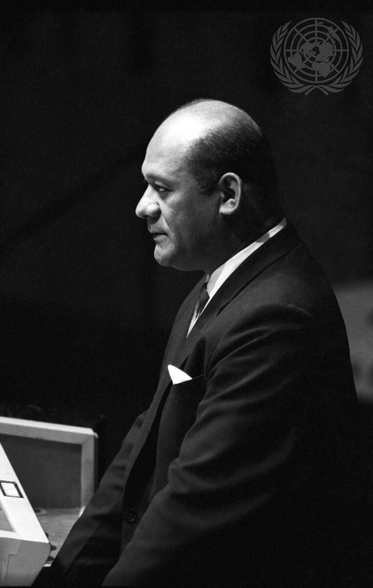 The Prime Minister of Western Samoa, Fiame Mataafa Foumuina Mulinu’u II is seen here addressing the Assembly, as a member of the New Zealand delegation.