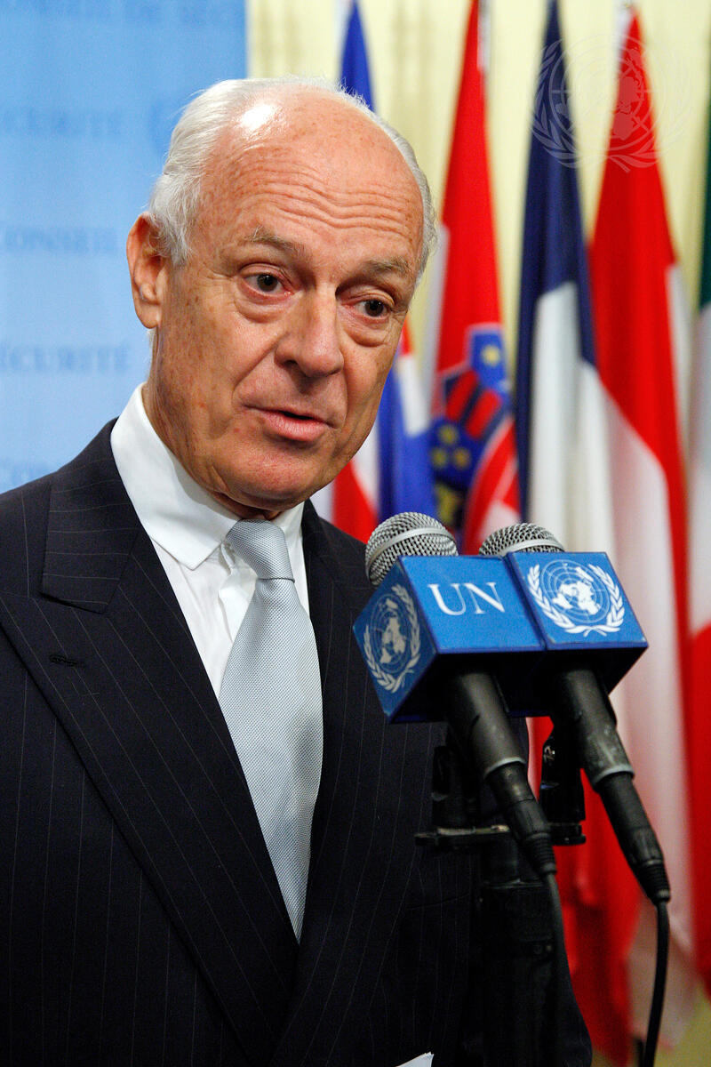 Staffan de Mistura, Special Representative of the Secretary-General and Head of the United Nations Assistance Mission for Iraq (UNAMI), briefs the media following a Security Council meeting on the situation in that country.