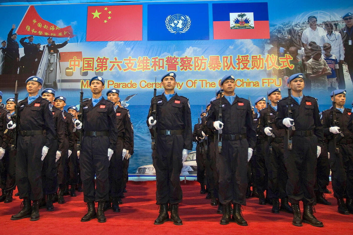 Members of the Chinese contingent of the United Nations Stabilization Mission in Haiti (MINUSTAH) receive medals in recognition of their contribution.