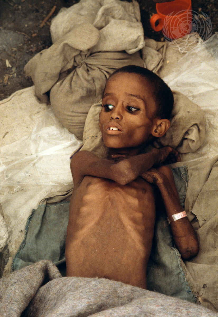 A young boy lies dying at a camp for drought victims in Bati, Ethiopia.