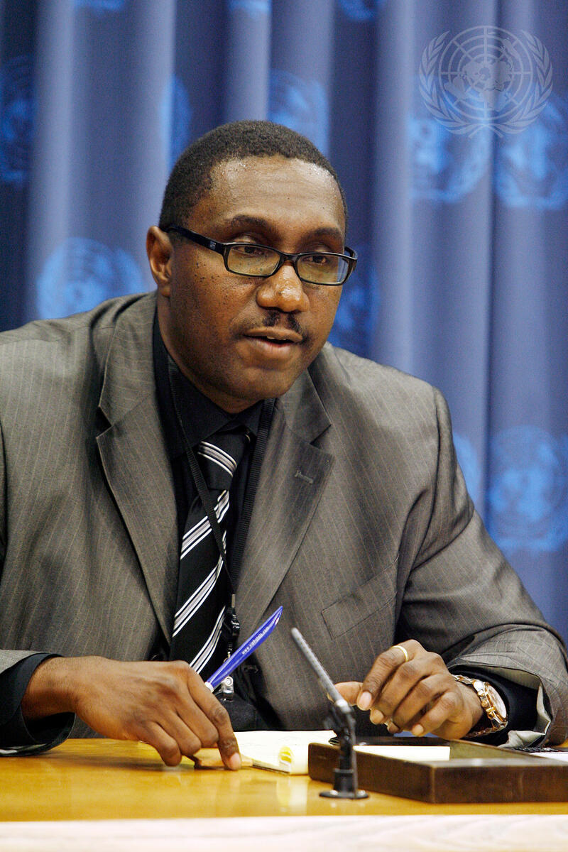 Henry Leonard Mac-Donald, Permanent Representative of Suriname to the United Nations, addresses a press conference on the internal process and discussions leading to his country's accession to the Rome Statue of the International Criminal Court.