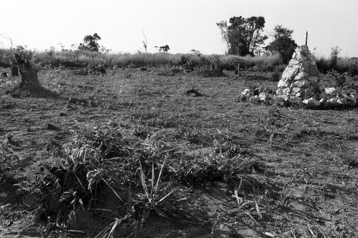 View of the field at Ndola, Zambia, where the plane carrying the late Secretary-General Dag Hammarskjöld crashed on September 17, 1961; the site is marked by a cairn. [Exact date unknown, ca. 1965]