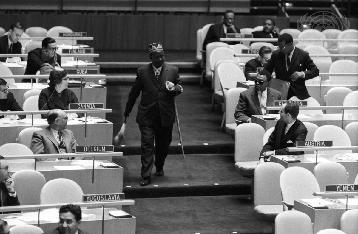 Mr. Oginga Odinga, Kenya’s Minister for Home Affairs of Kenya, descending the steps of the General Assembly hall at this afternoon's meeting.