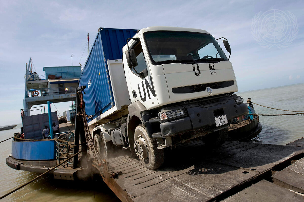 A United Nations truck arrives at a private port with food and water supplies for distribution to the victims after the tropical storm "Hanna" dumped heavy rain leaving hundreds dead and thousands others stranded.