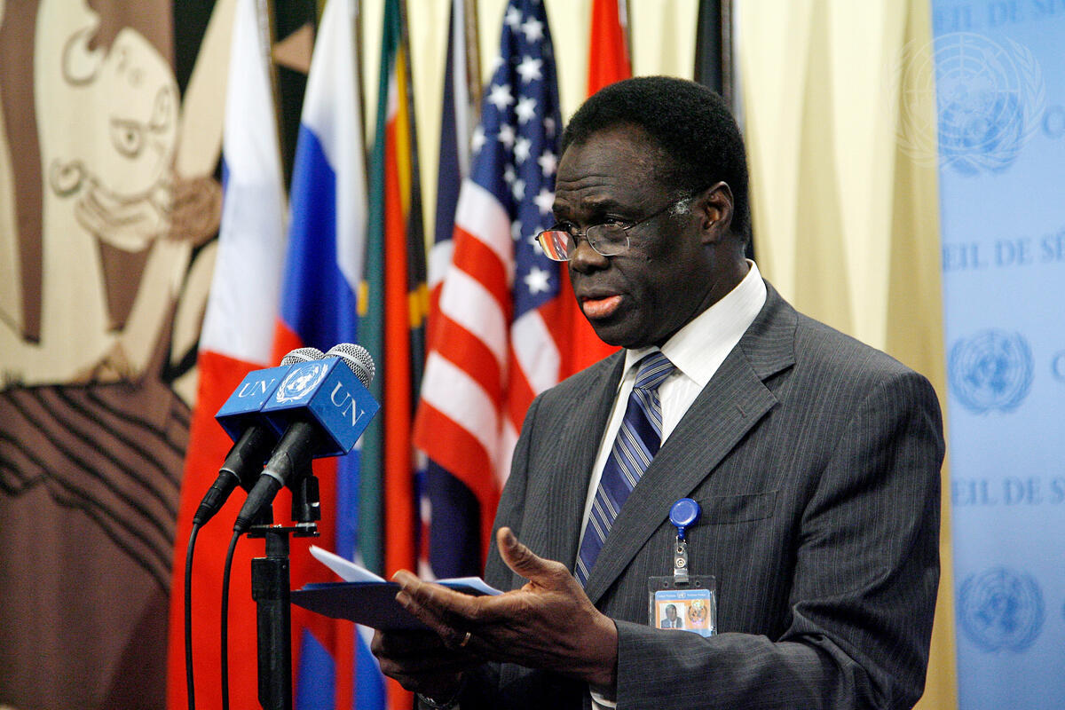 Michel Kafando, Permanent Representative of Burkina Faso to the United Nations and President of the Security Council for September, reads for the press, a statement expressing the Council's condemnation, in the strongest terms, of the recent terrorist attacks in Spain.