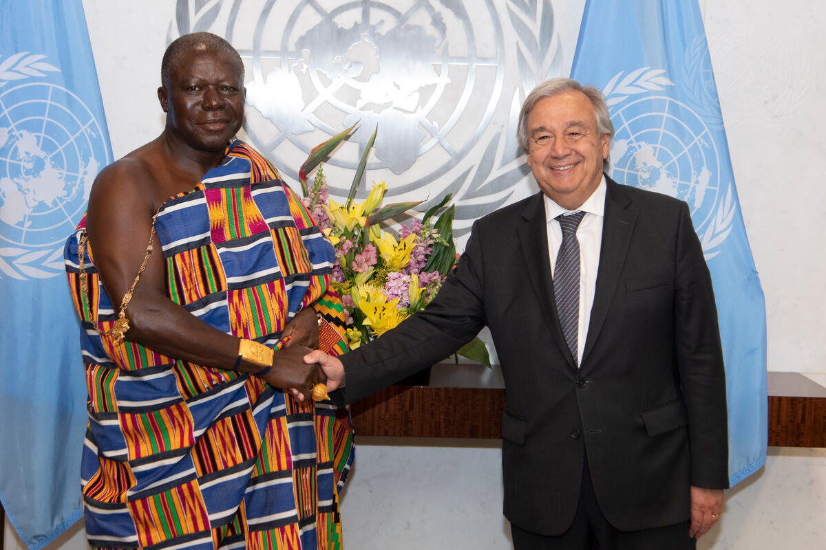 Secretary-General António Guterres (right) meets with Otumfuo Osei Tutu II, ""Asantehene"", King of the Ashanti Kingdom of the Republic of Ghana.
