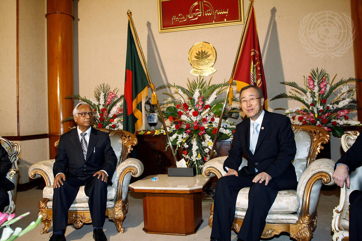 Secretary-General Ban Ki-moon (right) holds talks with Iajuddin Ahmed, President and Chief of the Caretaker Government of the People?s Republic of Bangladesh.