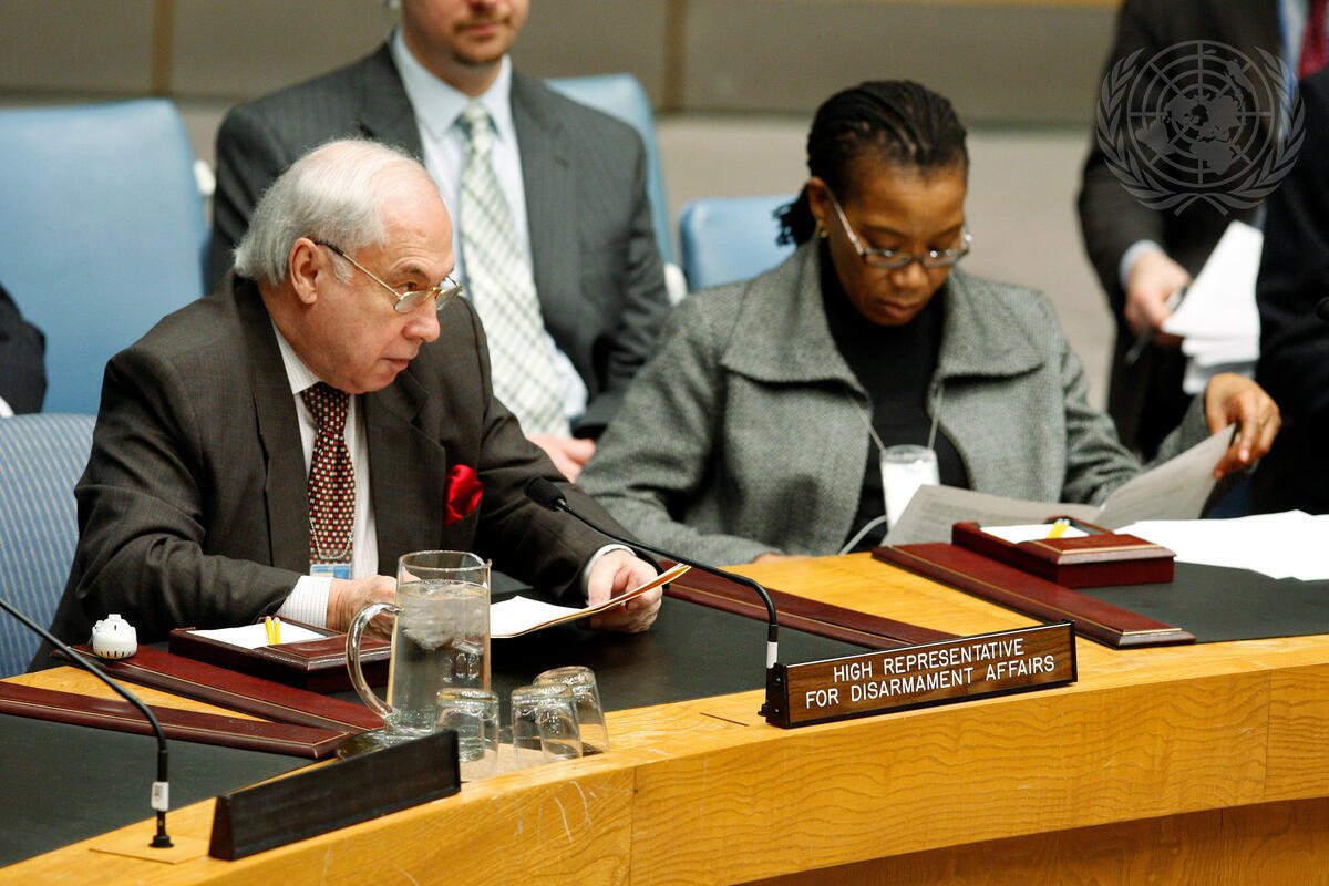 Sérgio de Queiroz Duarte, United Nations High Representative for Disarmament Affairs, addresses a Security Council meeting on the maintenance of international peace and security.