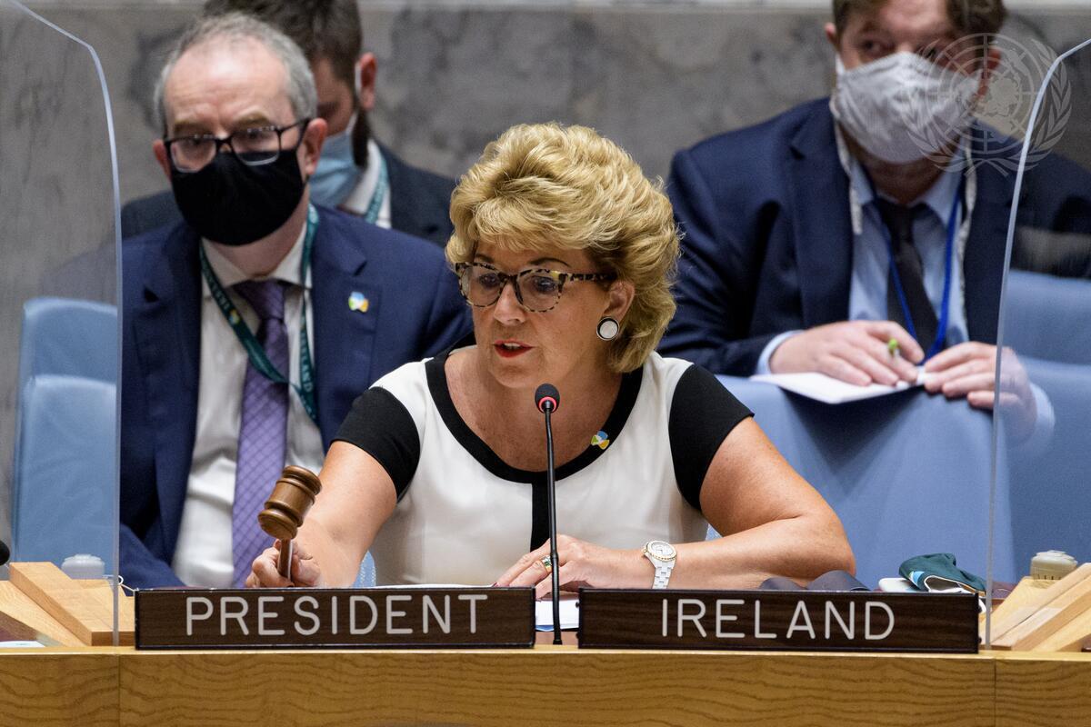 Geraldine Byrne Nason, Permanent Representative of Ireland to the United Nations and President of the Security Council for the month of September, chairs the Security Council meeting on the situation in the Middle East (Syria).