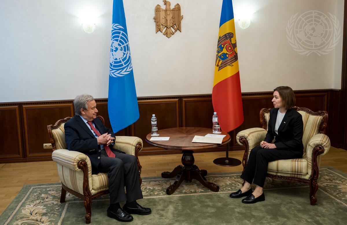 The Secretary-General is in the Republic of Moldova for a two-day visit to express his solidarity and thank Moldova for its support for peace, and for its people’s generosity in opening their hearts and homes to almost half a million Ukrainian refugees fleeing the war.