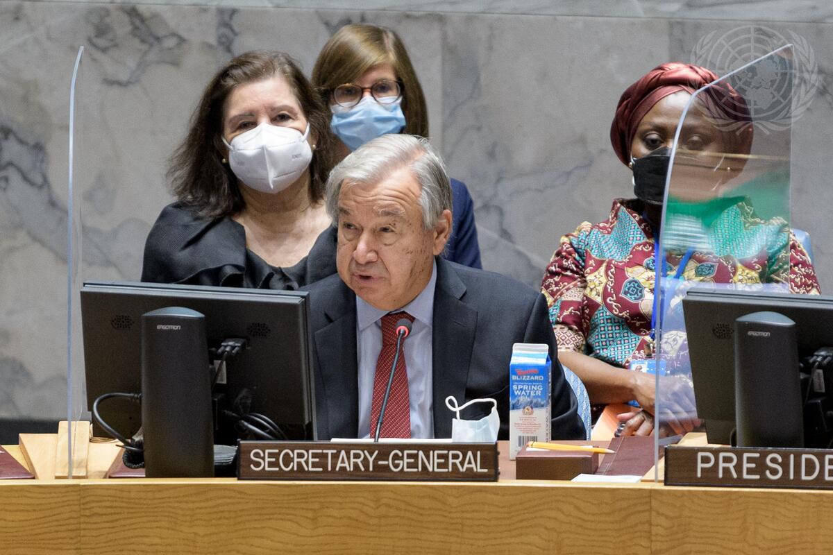 Secretary-General António Guterres addresses the Security Council meeting on the United Nations peacekeeping operations with a focus on United Nations transitions.