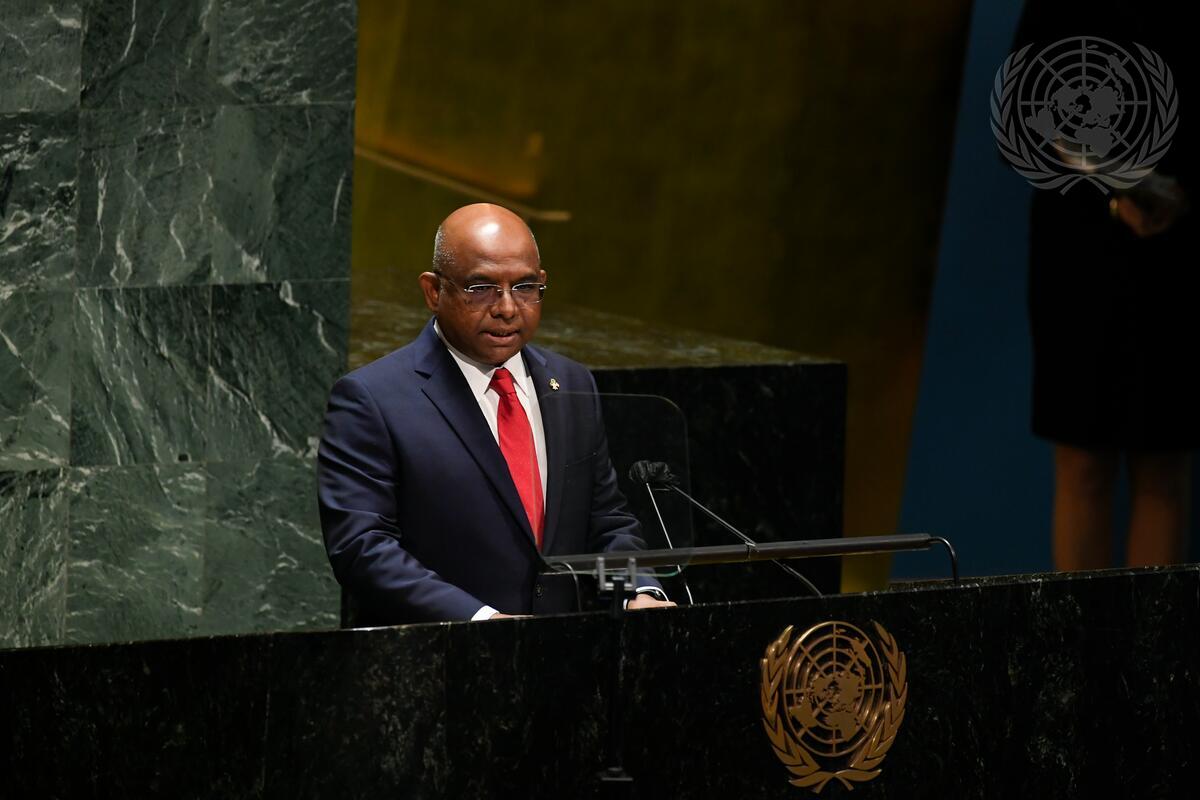 Abdulla Shahid, President of the seventy-sixth session of the United Nations General Assembly, addresses the 1st plenary and opening meeting of the seventy-sixth regular session of the General Assembly.