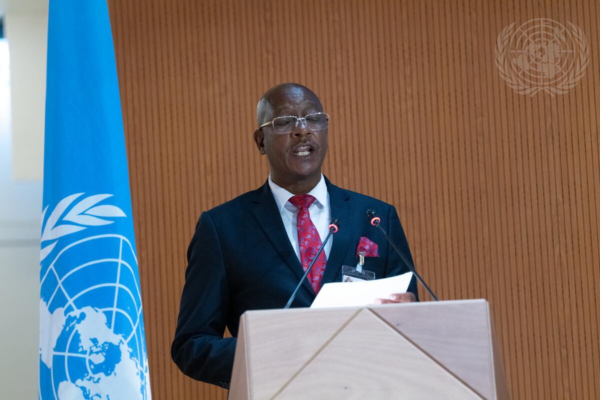 Ziyambi Ziyambi, Minister of Justice, Legal and Parliamentary Affairs of Zimbabwe, addresses the high-level segment of the 49th regular session of the Human Rights Council (28 February – 1 April 2022).