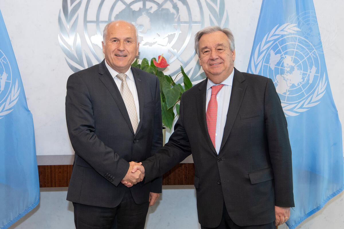 Secretary-General António Guterres (right) meets with Valentin Inzko, High Representative for Bosnia and Herzegovina.