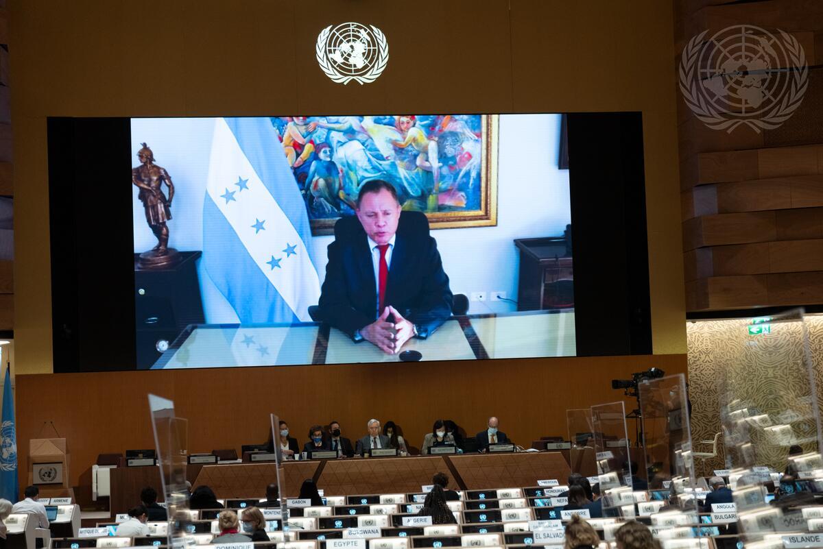 Antonio García, State Secretary at the Ministry of Foreign Affairs and International Cooperation of Honduras, addresses the high-level segment of the 49th regular session of the Human Rights Council (28 February – 1 April 2022).