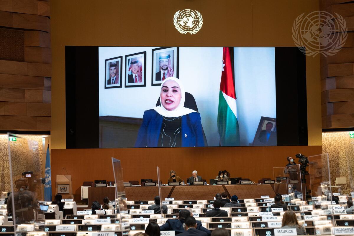 Wafaa Bani Mustafa, State Minister of Legal Affairs of Jordan, addresses the high-level segment of the 49th regular session of the Human Rights Council (28 February – 1 April 2022).