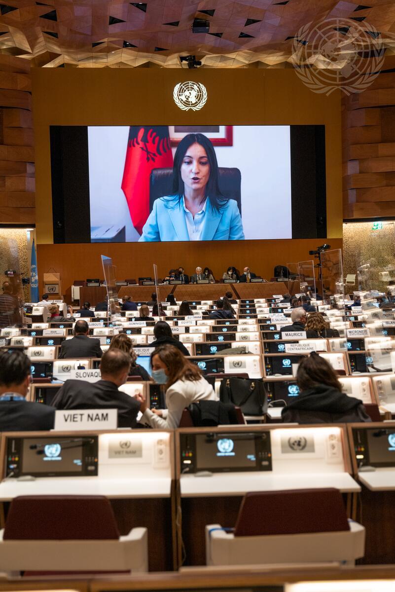 Megi Fino, Deputy Minister for Europe and Foreign Affairs of Albania, addresses the high-level segment of the 49th regular session of the Human Rights Council (28 February – 1 April 2022).
