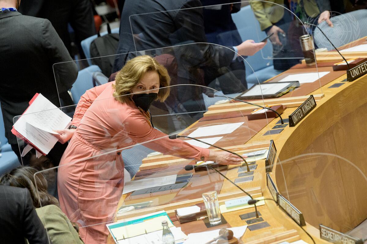 Hasmik Egian, Director of the Security Council Affairs Division of the Department of Political and Peacebuilding Affairs (DPPA), rings the bell to indicate the start of the Security Council meeting on threats to international peace and security.