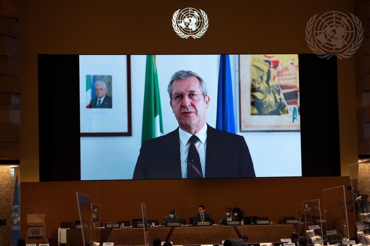 Benedetto Della Vedova, Undersecretary of State for Foreign Affairs and International Cooperation of Italy, addresses the high-level segment of the 49th regular session of the Human Rights Council (28 February – 1 April 2022).