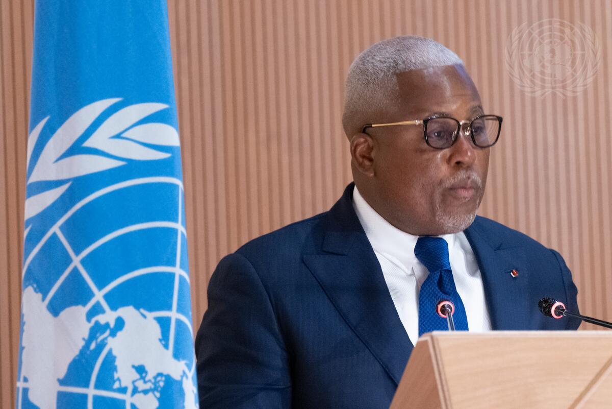 Aurélien Agbenonci, Minister for Foreign Affairs and Cooperation of the Republic of Benin, addresses the high-level segment of the 49th regular session of the Human Rights Council (28 February – 1 April 2022).