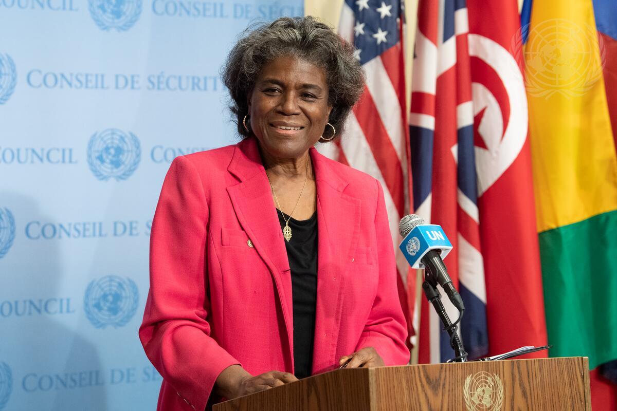 Linda Thomas-Greenfield, Permanent Representative of the United States to the United Nations, briefs reporters on the conclusion of the U.S. presidency of the Security Council.