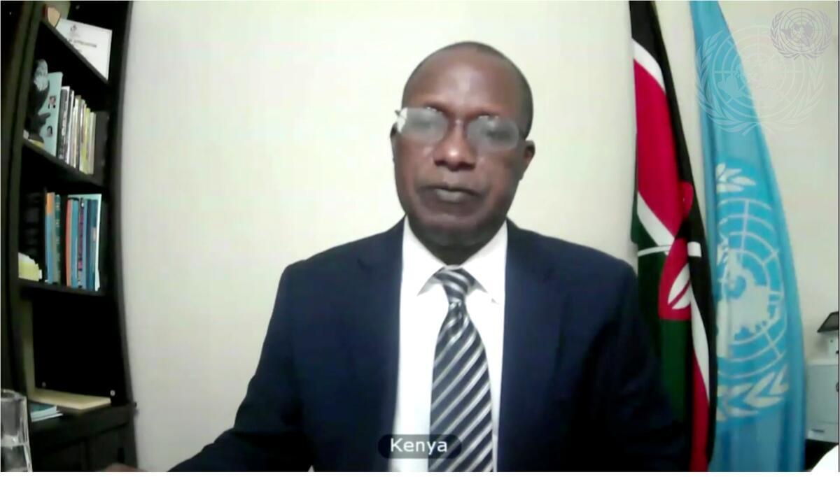 Michael Kiboino, Deputy Permanent Representative of the Republic of Kenya to the United Nations, addresses the videoconference with Security Council members in connection with the Middle East (Syria).