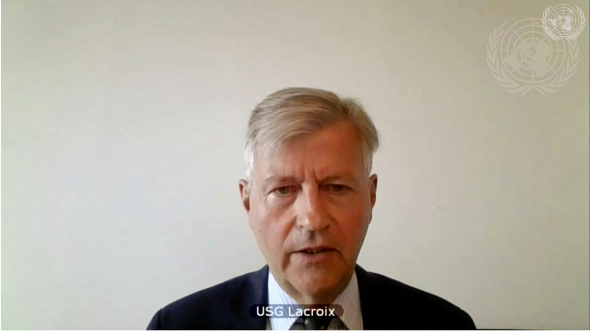 Jean Pierre-Lacroix, Under-Secretary-General for Peace Operations, briefs the videoconference with Security Council members in connection with the United Nations Multidimensional Integrated Stabilization Mission in Mali (MINUSMA).