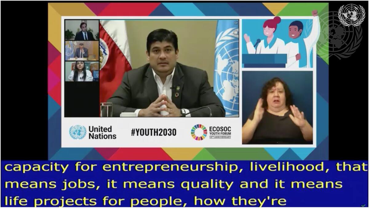 Carlos A. Alvarado Quesada, President of Costa Rica, addresses the Economic and Social Council (ECOSOC) Youth Forum “A Decade of Action: Building a Resilient Recovery”.