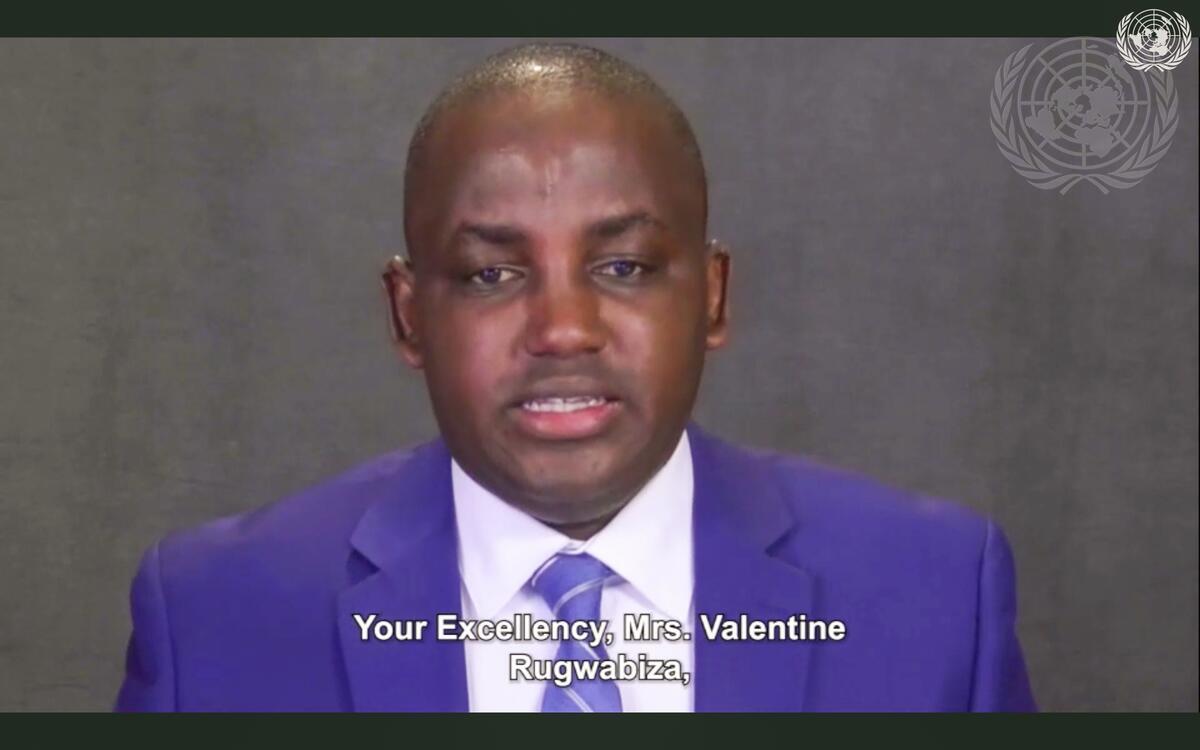 Omar Ndizeye, child survivor and author of "Life and Death in Nyamata: Memoir of a Young Boy in Rwanda's Darkest Church", addresses the commemoration of the International Day of Reflection on the 1994 Genocide Against the Tutsi in Rwanda.