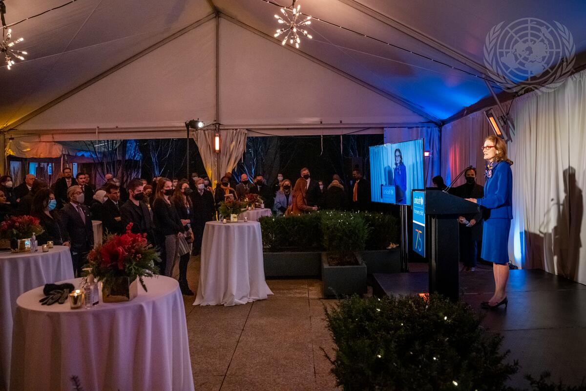 A farewell reception is held to mark the 75th Anniversary of the United Nations Children's Fund (UNICEF) and to bid farewell to Henrietta H. Fore, outgoing Executive Director of UNICEF, at the UNICEF House.