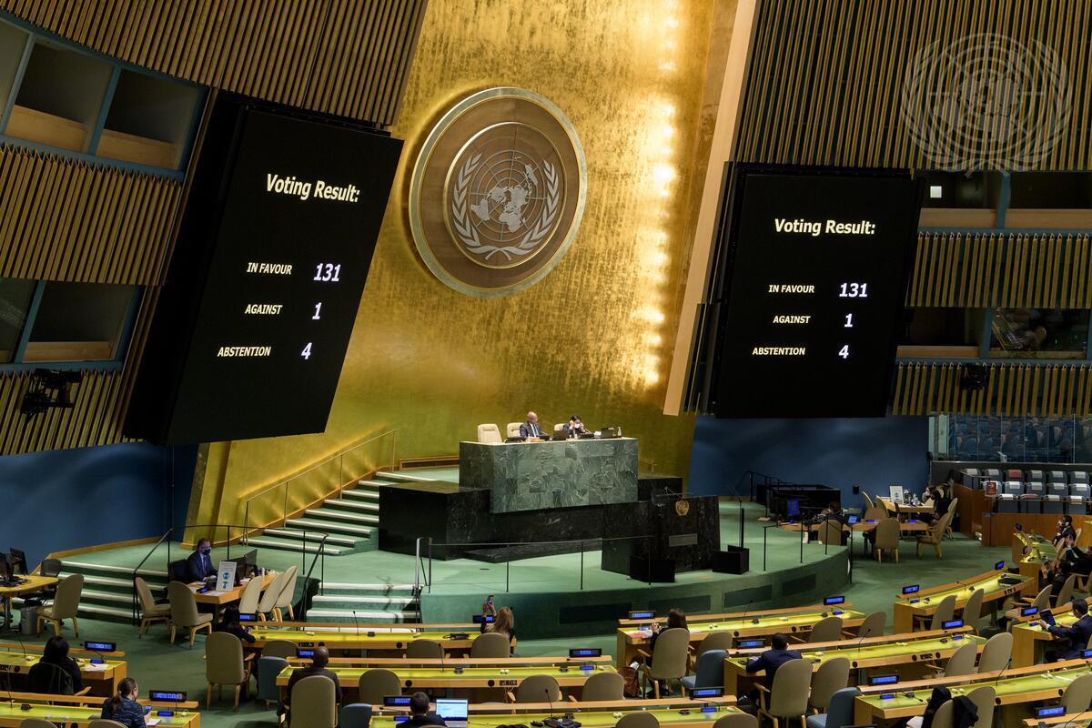 The General Assembly adopts a resolution on Oceans and the law of the sea (A/76/L.20) during the 48th plenary meeting of the General Assembly on culture of peace and prevention of armed conflict.