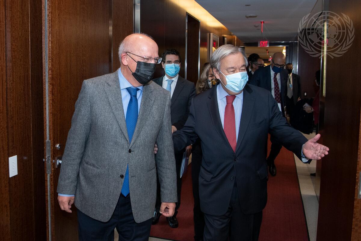 Secretary-General António Guterres (right) meets with Augusto Santos Silva, Minister for Foreign Affairs of the Portuguese Republic.