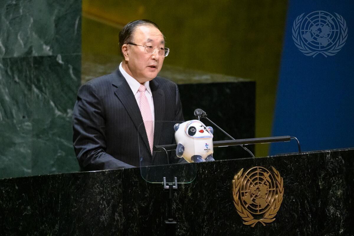 Zhang Jun, Permanent Representative of China to the United Nations, addresses the General Assembly plenary meeting on Sport for development and peace: building a peaceful and better world through sport and the Olympic ideal.