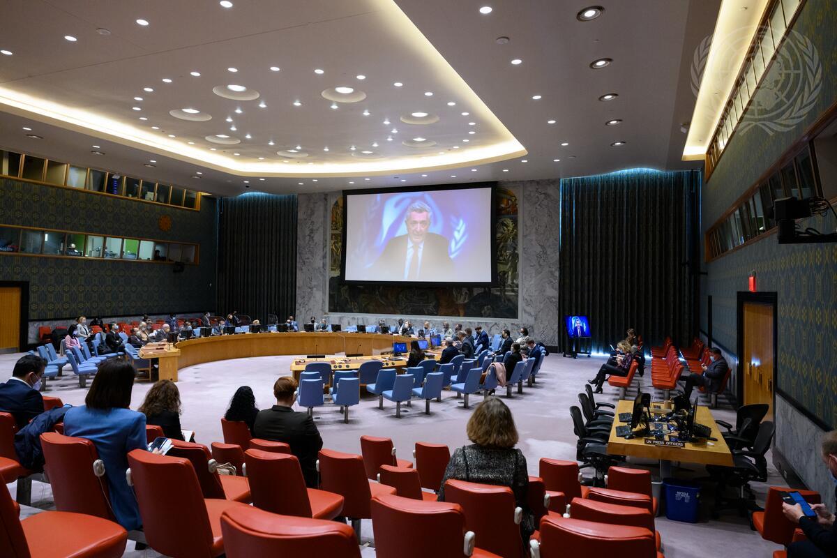 Security Council meets to hear a briefing by Filippo Grandi (on screens), United Nations High Commissioner for Refugees.