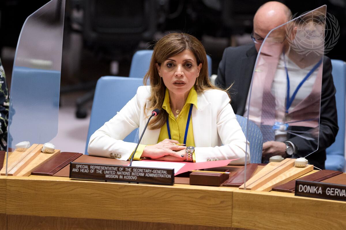 Caroline Ziadeh, Special Representative of the Secretary-General and Head of the United Nations Interim Administration Mission in Kosovo, briefs the Security Council meeting to hear report of the Secretary-General on the United Nations Interim Administration Mission in Kosovo.