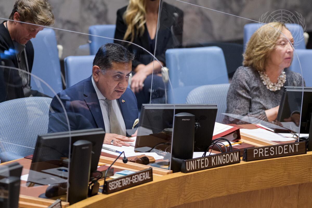 Tariq Ahmad (left), Minister for South and Central Asia, North Africa, the United Nations and the Commonwealth of the United Kingdom of Great Britain and Northern Ireland, chairs the Security Council meeting on maintenance of peace and security of Ukraine.