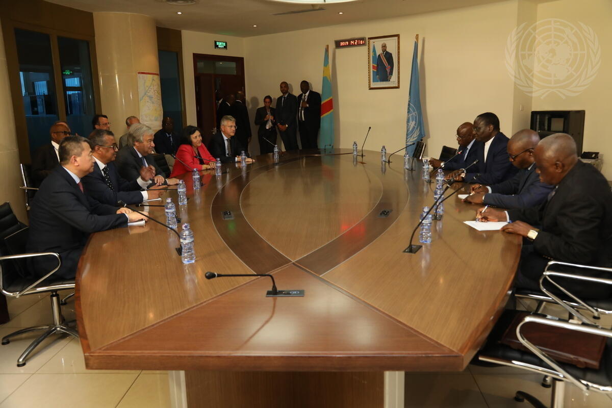 Mr. Guterres (third from left) meets with Bruno Tshibala Nzenzhe (third from right), Prime Minister of the Democratic Republic of the Congo.