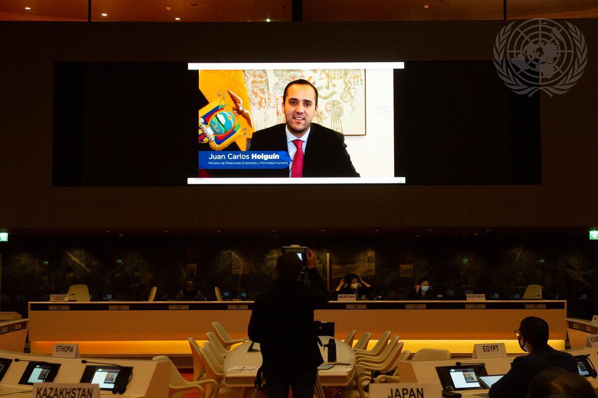 Juan Carlos Holguín, Minister for Foreign Affairs and Human Mobility of Ecuador, addresses the High-Level Segment 2022 of the Conference on Disarmament.