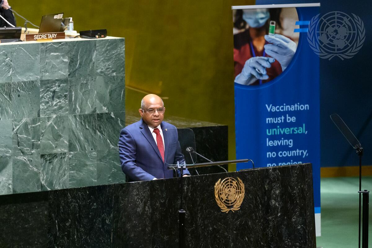Abdulla Shahid, President of the seventy-sixth session of the United Nations General Assembly, addresses the General Assembly high-level thematic debate on “Galvanizing momentum for universal vaccination”.