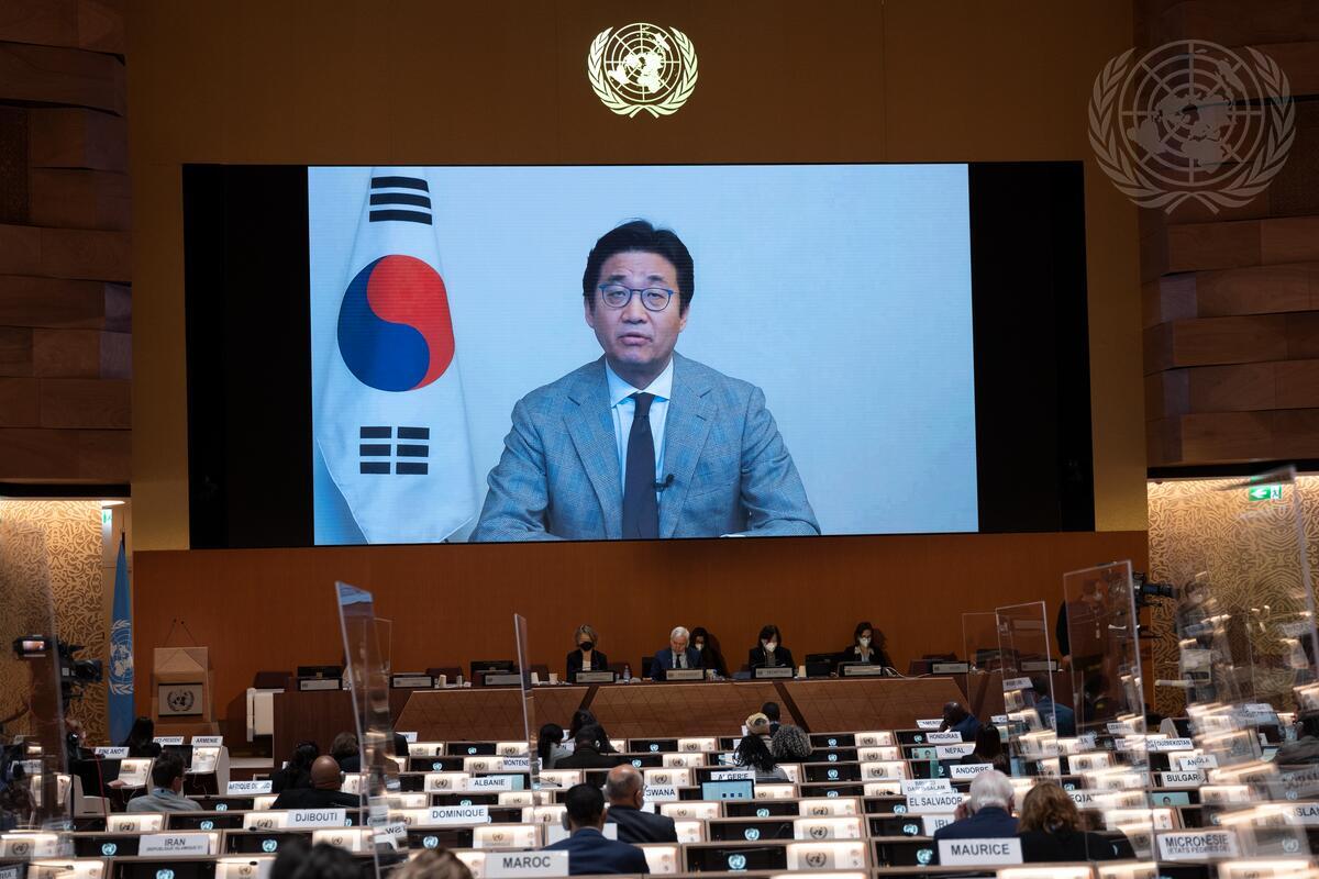 Choi Jongmoon, Vice-Minister for Foreign Affairs of the Republic of Korea, addresses the high-level segment of the 49th regular session of the Human Rights Council (28 February – 1 April 2022).