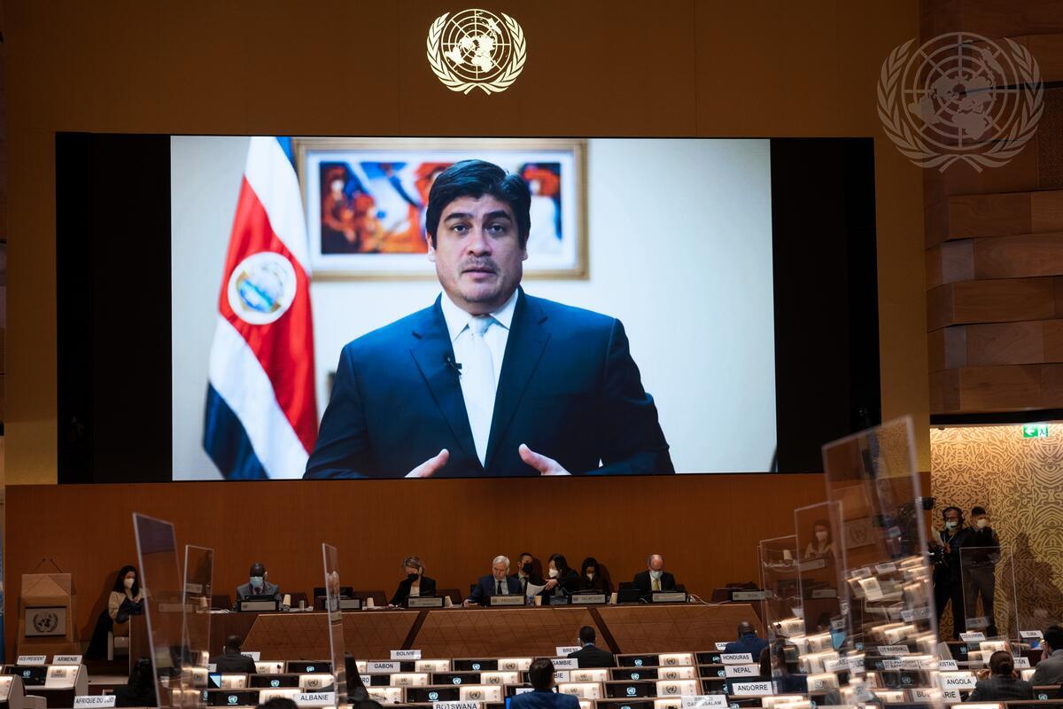 Carlos Alvarado Quesada, President of the Republic of Costa Rica, addresses the high-level segment of the 49th regular session of the Human Rights Council (28 February – 1 April 2022).
