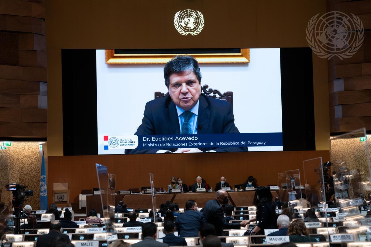 Euclides Roberto Acevedo Candia, Minister of Foreign Affairs of Paraguay, addresses the high-level segment of the 49th regular session of the Human Rights Council (28 February – 1 April 2022).