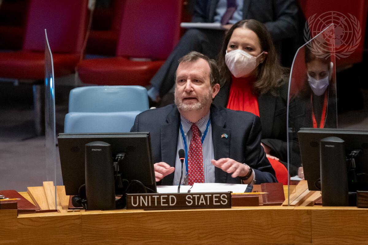 Richard M. Mills, Jr., Deputy Permanent Representative of the United States of America to the United Nations, addresses the Security Council meeting on the situation in Ukraine.