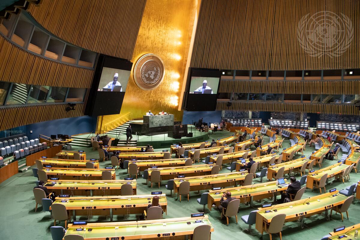 A wide view of the General Assembly meeting on the United Nations’ role in Africa’s anti-malaria fight, efforts for lasting peace and sustainable development.