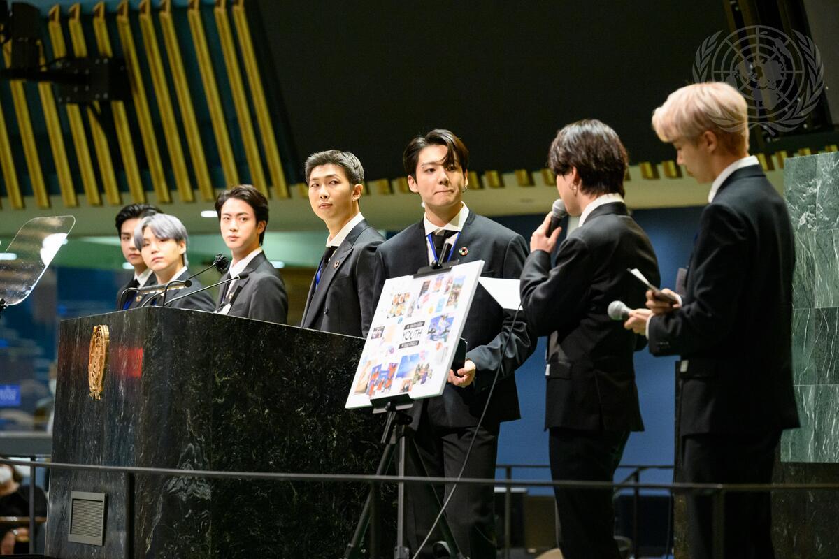 Members of BTS, Special Presidential Envoy for Future Generations and Culture of the Republic of Korea, make remarks and performs during the Sustainable Development Goals (SDG) Moment.
