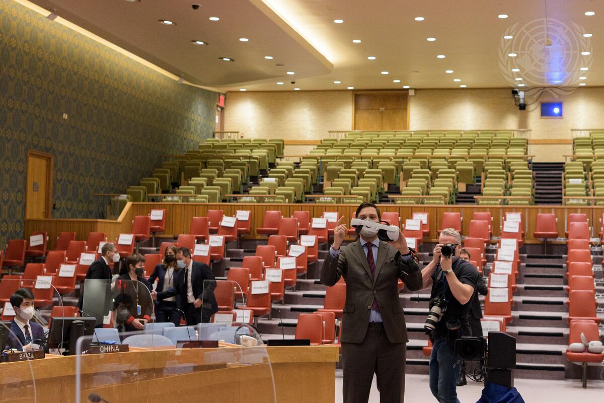 Members of the Security Council screen a virtual reality project on Colombia created by United Nations Department of Political and Peacebuilding Affairs.