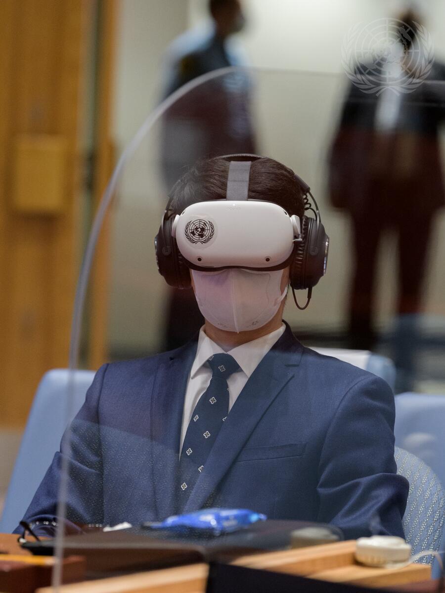 Members of the Security Council screen a virtual reality project on Colombia created by United Nations Department of Political and Peacebuilding Affairs.